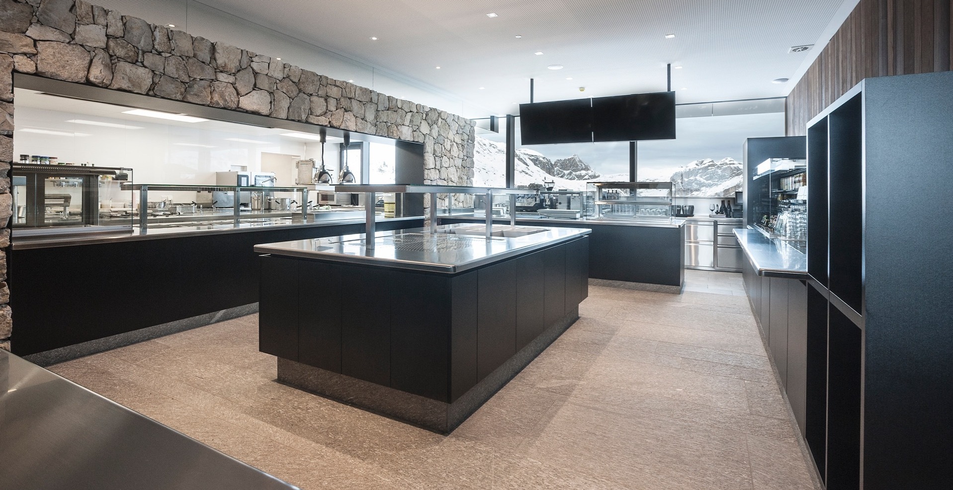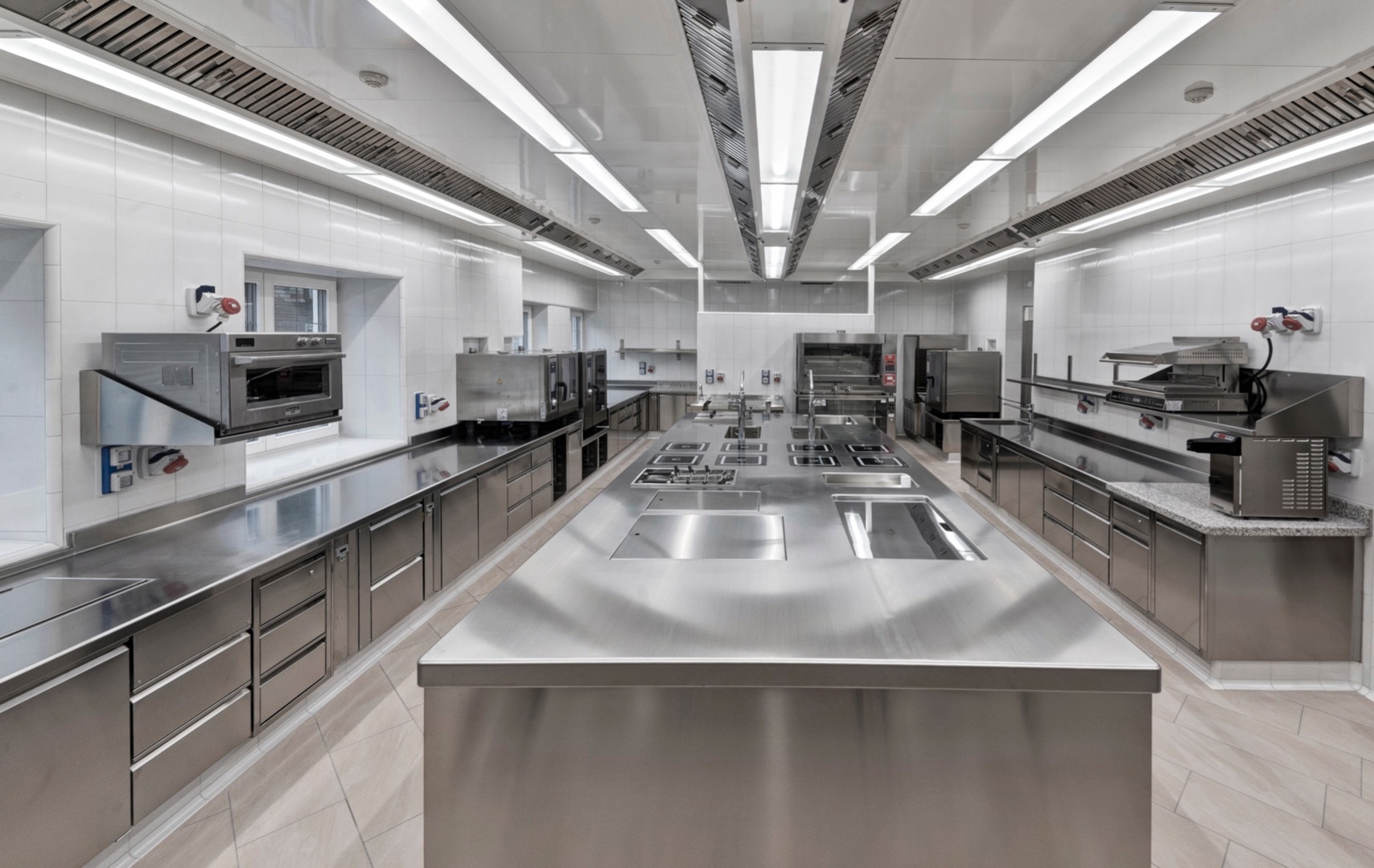 Grosskücheneinrichtungen in Chromnickelstahl.